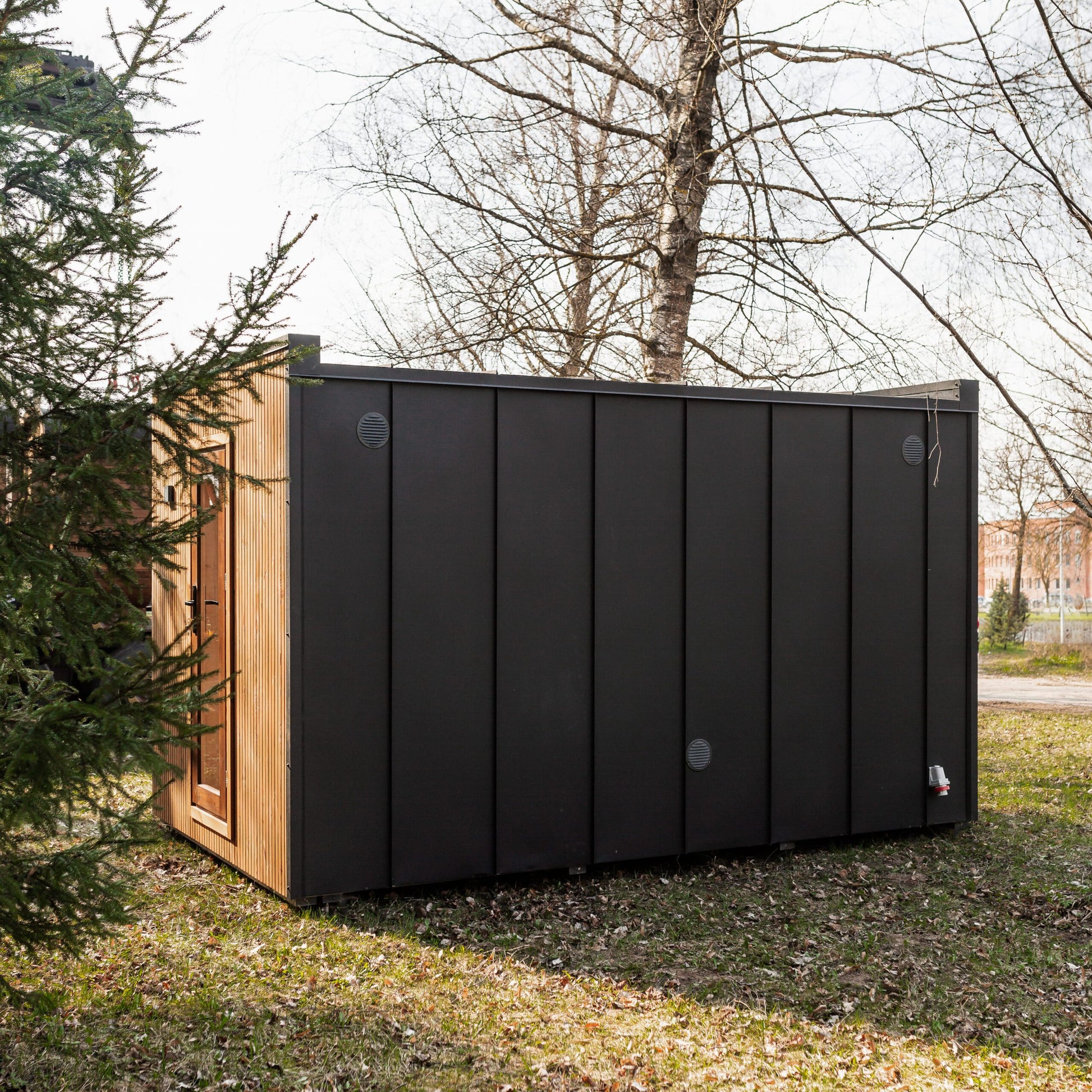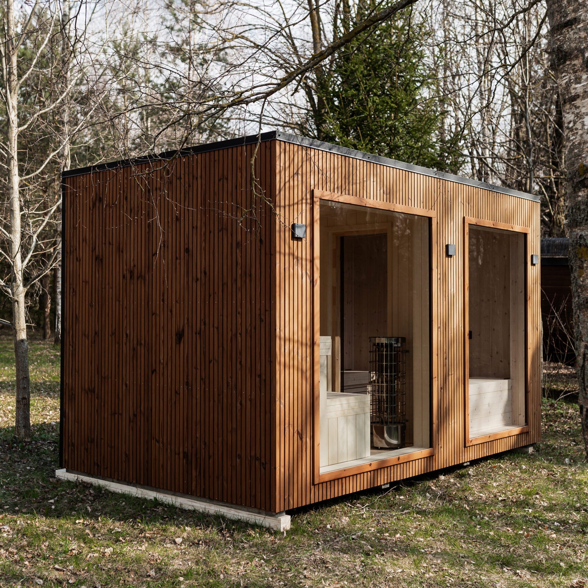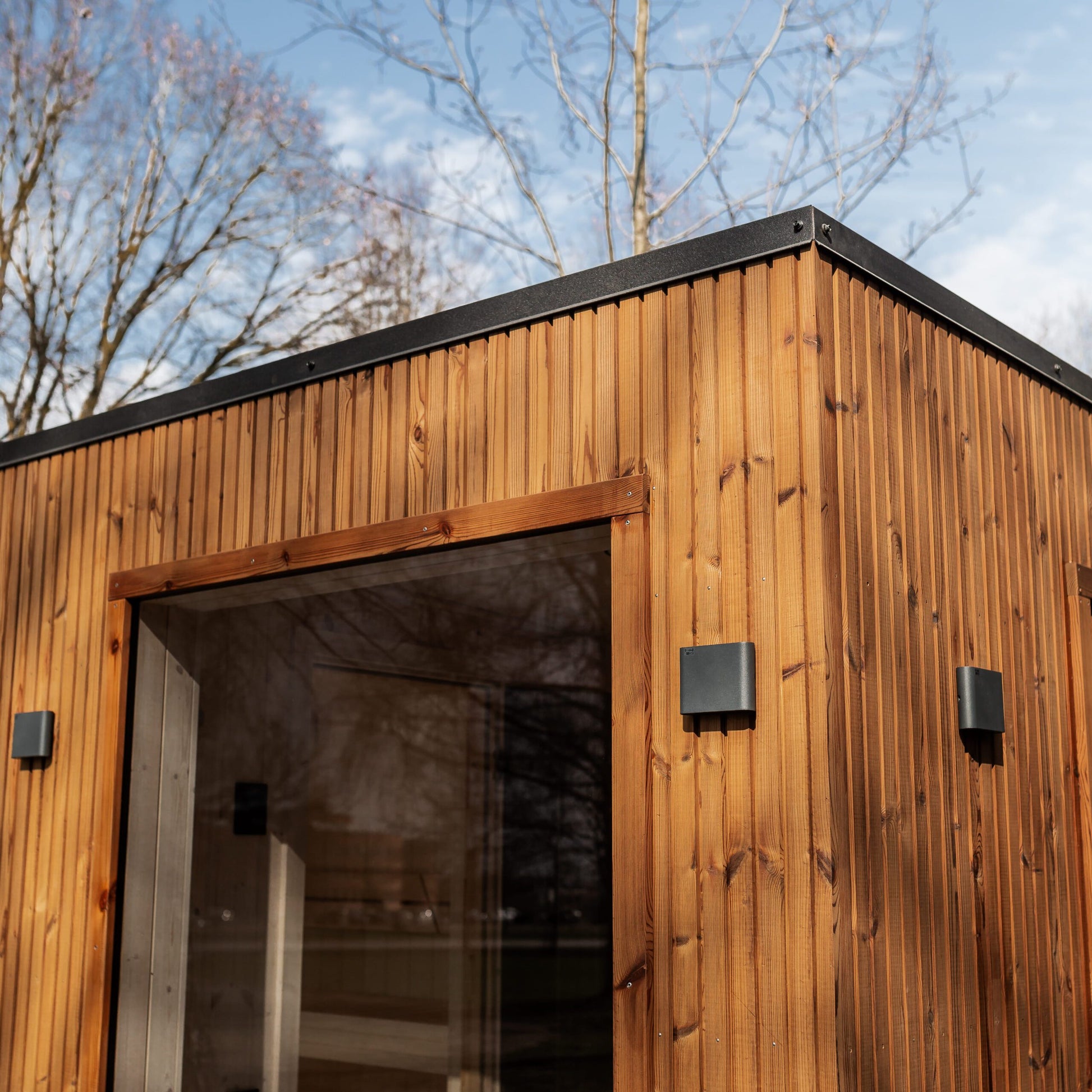 Die Rahmensauna LAKE Thermoholz 240×400 vereint minimalistisches skandinavisches Design mit präziser Handwerkskunst.