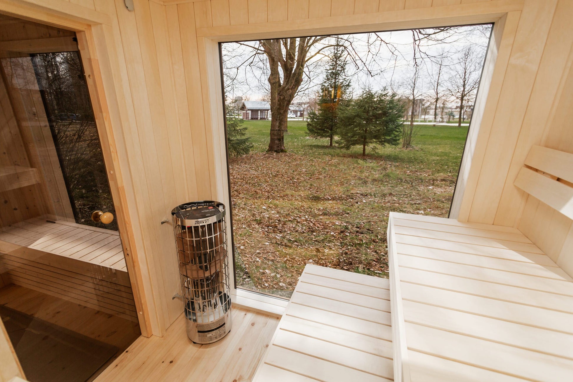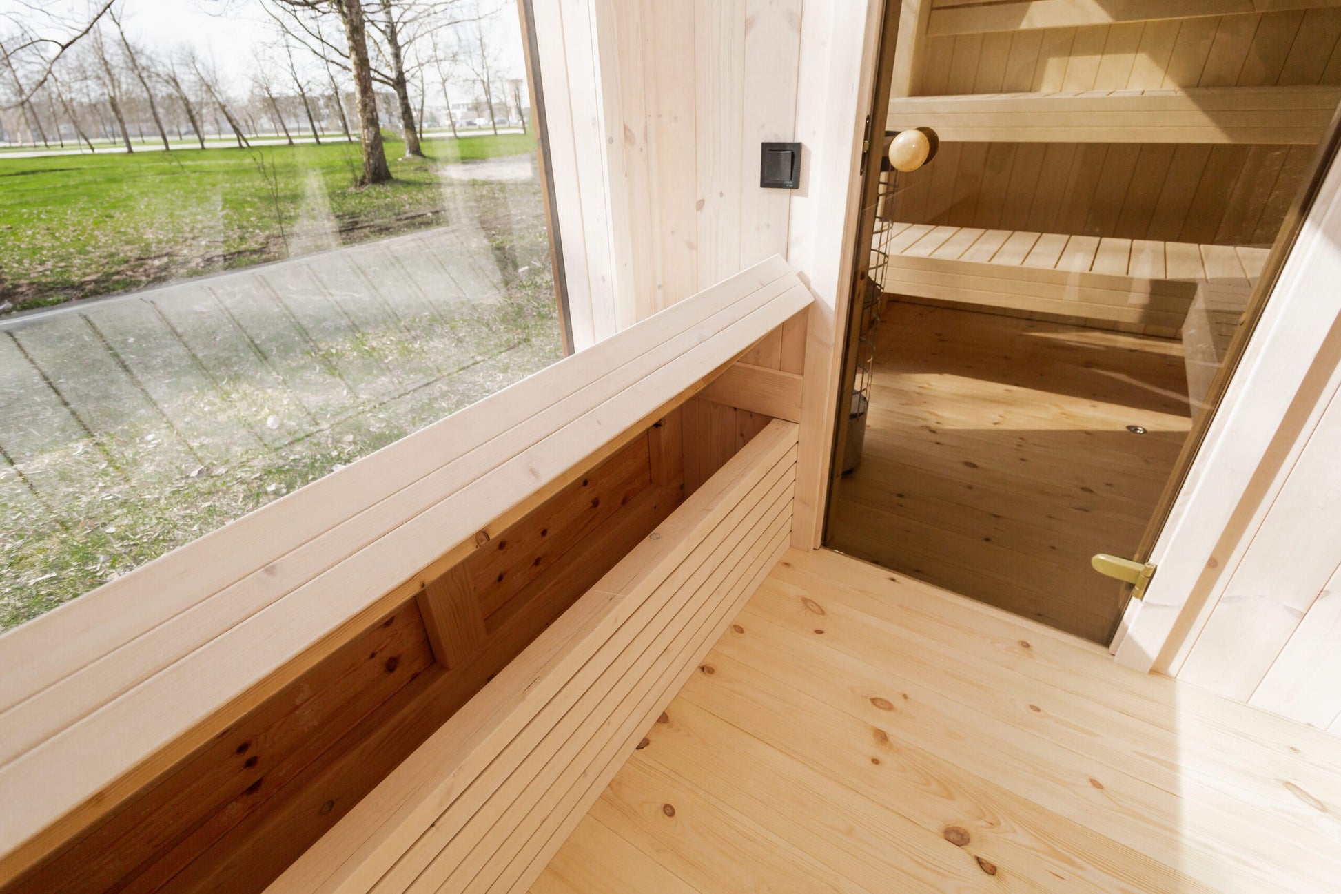 - Sauna-Innenverkleidung: Aspenholz (Klasse A) – glatt, elegant und hitzebeständig.