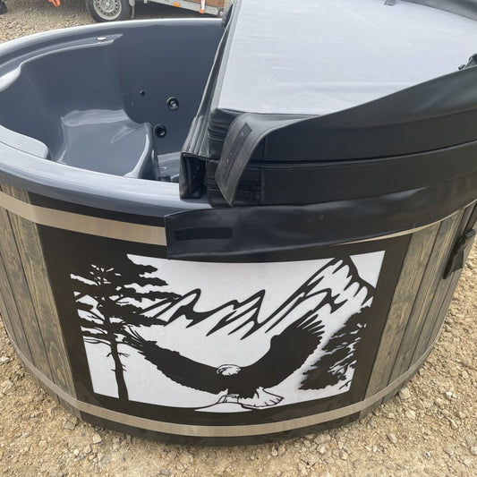 FIBERGLASS HOT TUB WITH OUTDOOR OVEN with side ladder