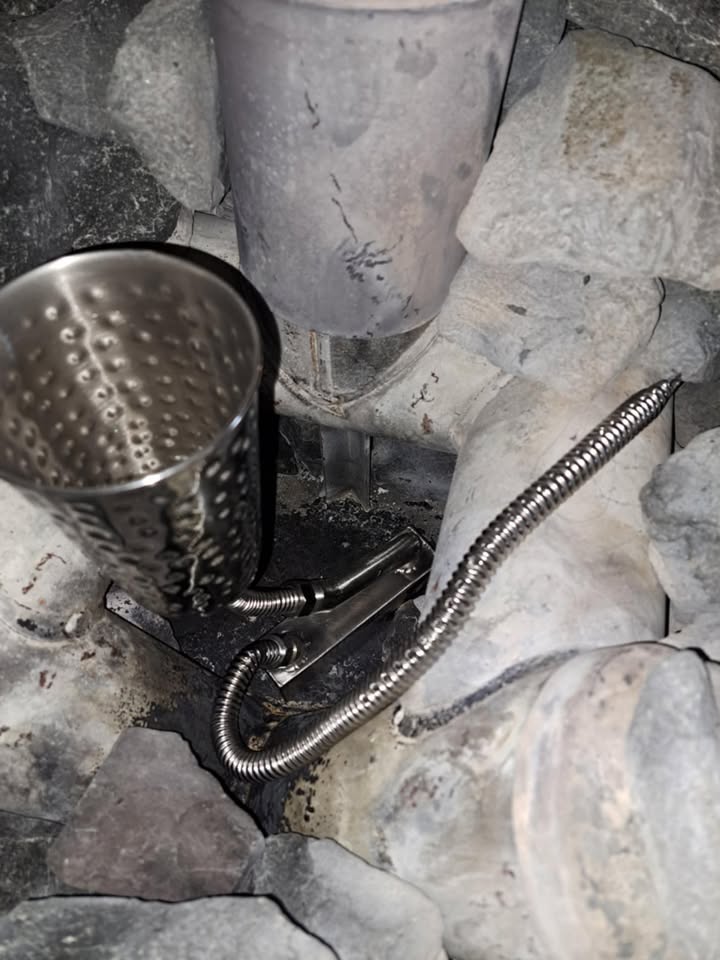 A wood-burning stove always has the coldest stones at the top, where steam is usually thrown, and the hottest stones at the bottom. This device is placed under the stones near the stove. If water is poured into the device, then due to the design of the device, the water evaporates already inside the device, and the steam reaches the lower hottest stones and heats up even more. Such steam, unlike ordinary steam, does not burn the human body and has a good effect on the respiratory system. During operation, pressure is created in the device, but recoil movement is prevented.